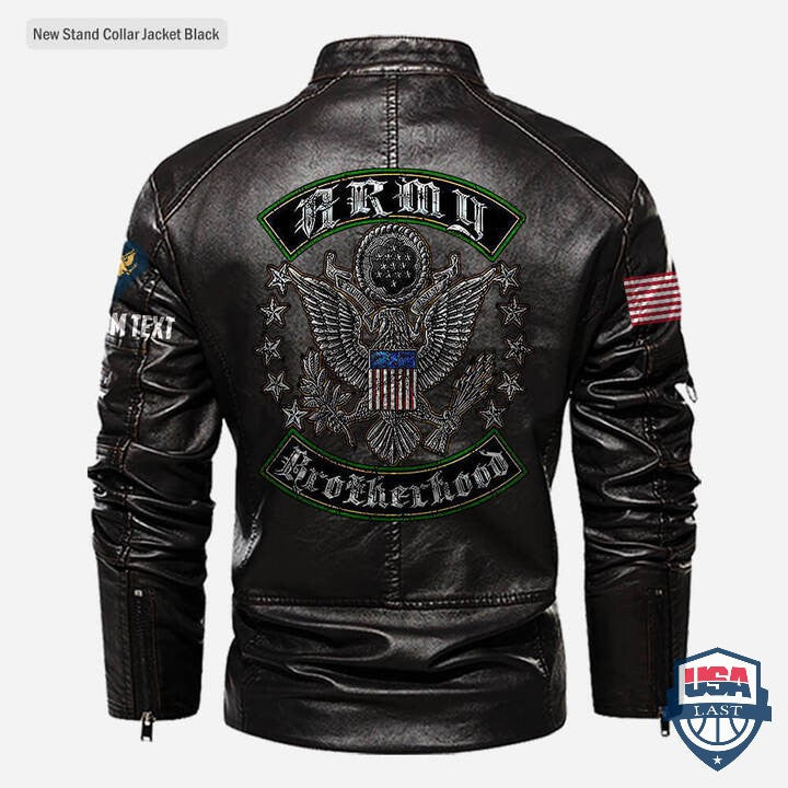 Army Brotherhood Custom Stand Collar Leather Jacket - HVsun