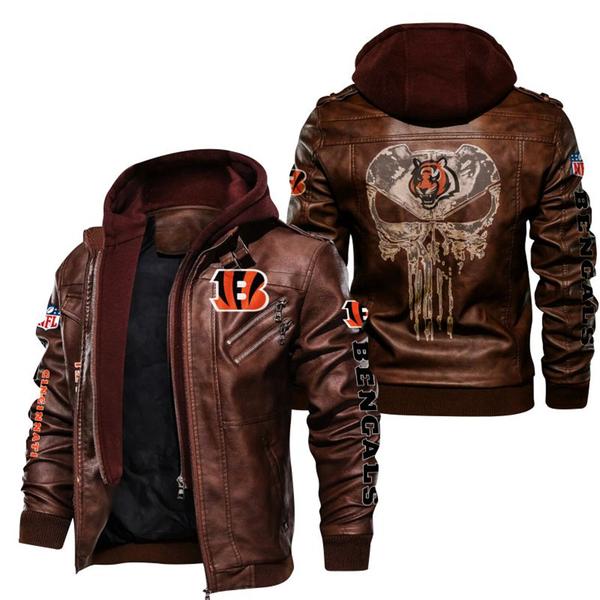 A leather jacket is a must-have investment for any style-conscious man. It’s unique in its ability to channel heritage, attitude, and unbridled masculinity in a single garment. Cincinnati Bengals NFL Punisher Skull Leather Jacket New . They’re also surprisingly versatile in their styling, working as an alternative to a blazer, for urban streetwear, or with a grungy vibe. Whether you choose a biker or bomber, racer or flight, there’s sure to be a leather jacket style that will fit easily into your wardrobe. Depending on what you select, a leather jacket can be a life-long friend that will keep you warm, hype you up, and make you look cool in front of your crush!