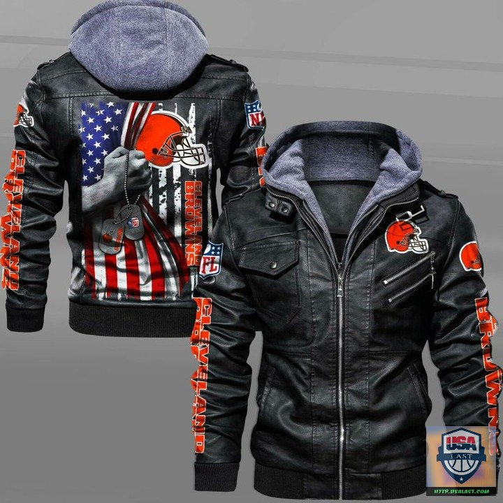 Detail Product : Cleveland Browns Military Dog Tag Leather Jacket
