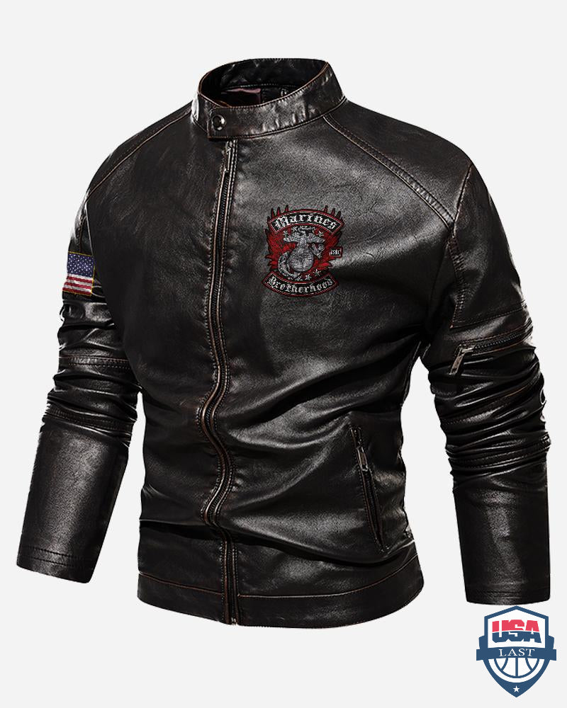 US Marines Corps Brotherhood Distressed Rocker Foil Stamp Motor Leather Jacket T081221