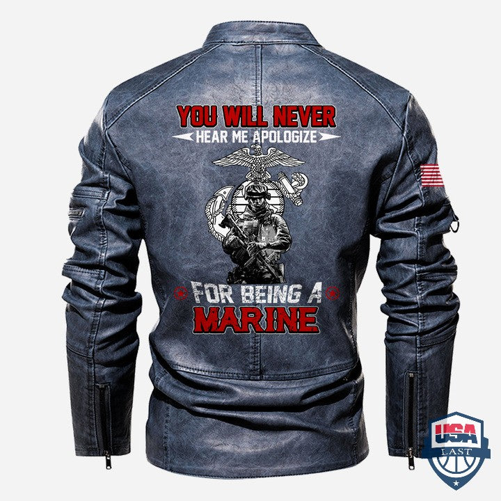 You Will Never Hear Me Apologize For Being A Marine Personalized Leather Jacket - HVsun